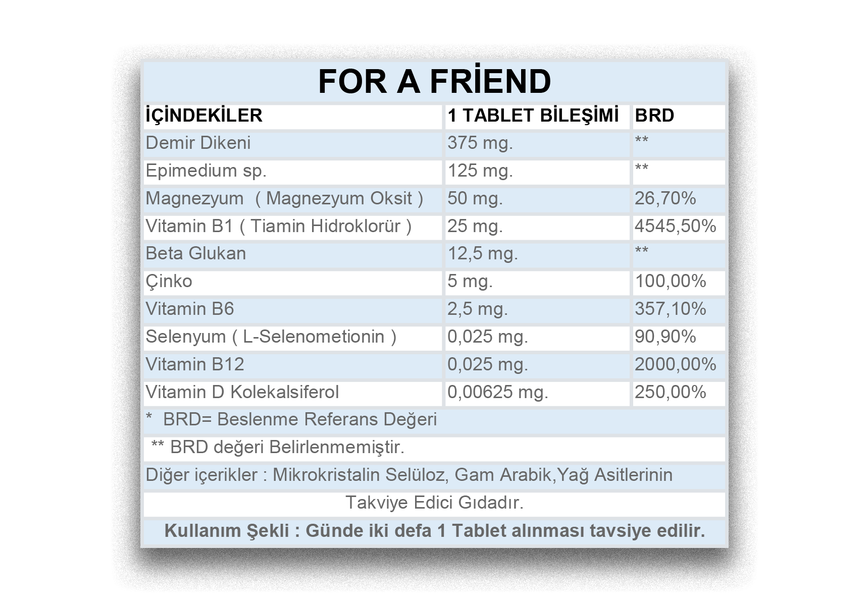 Not:“Takviye edici gıdadır. İlaç değildir. Hastalıkların önlenmesi veya tedavi edilmesi amacıyla kullanılmaz.”